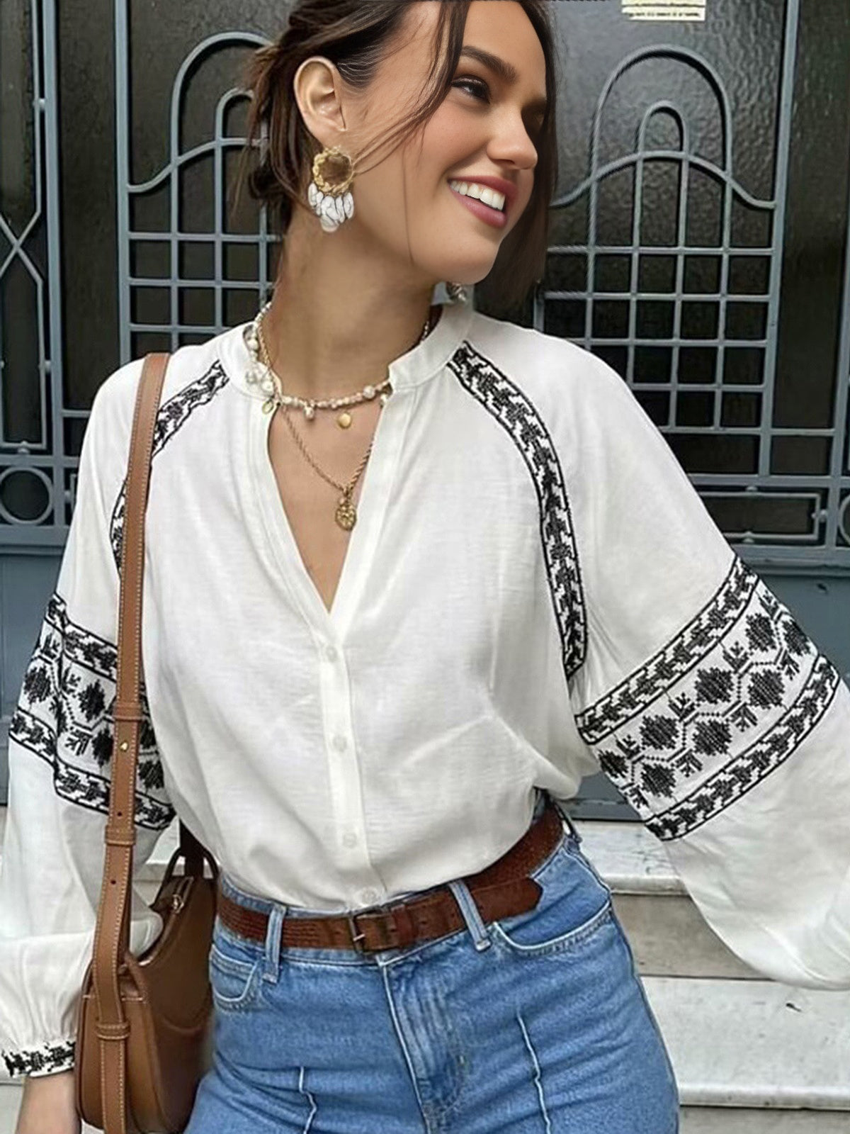 Chemise à manches longues avec détails brodés