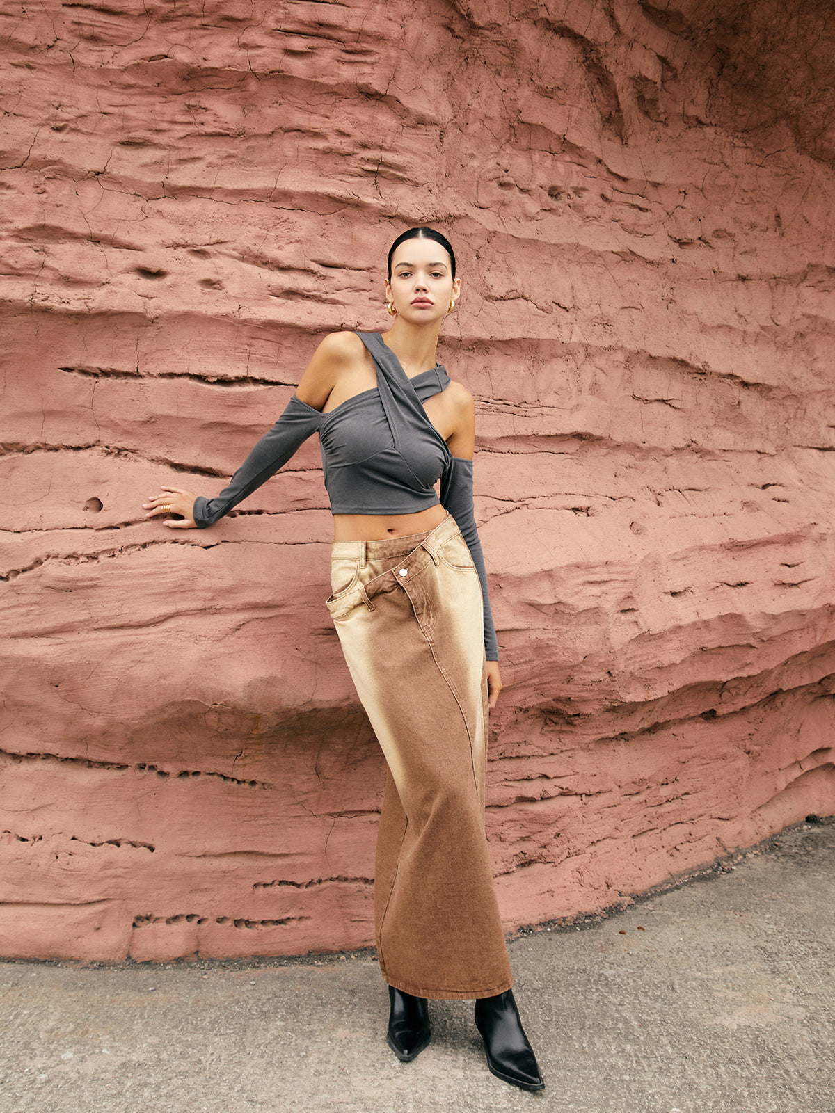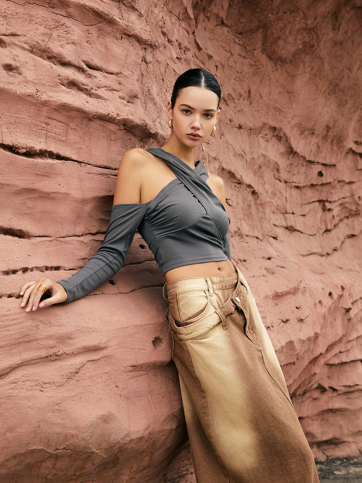 Haut à capuche à encolure croisée