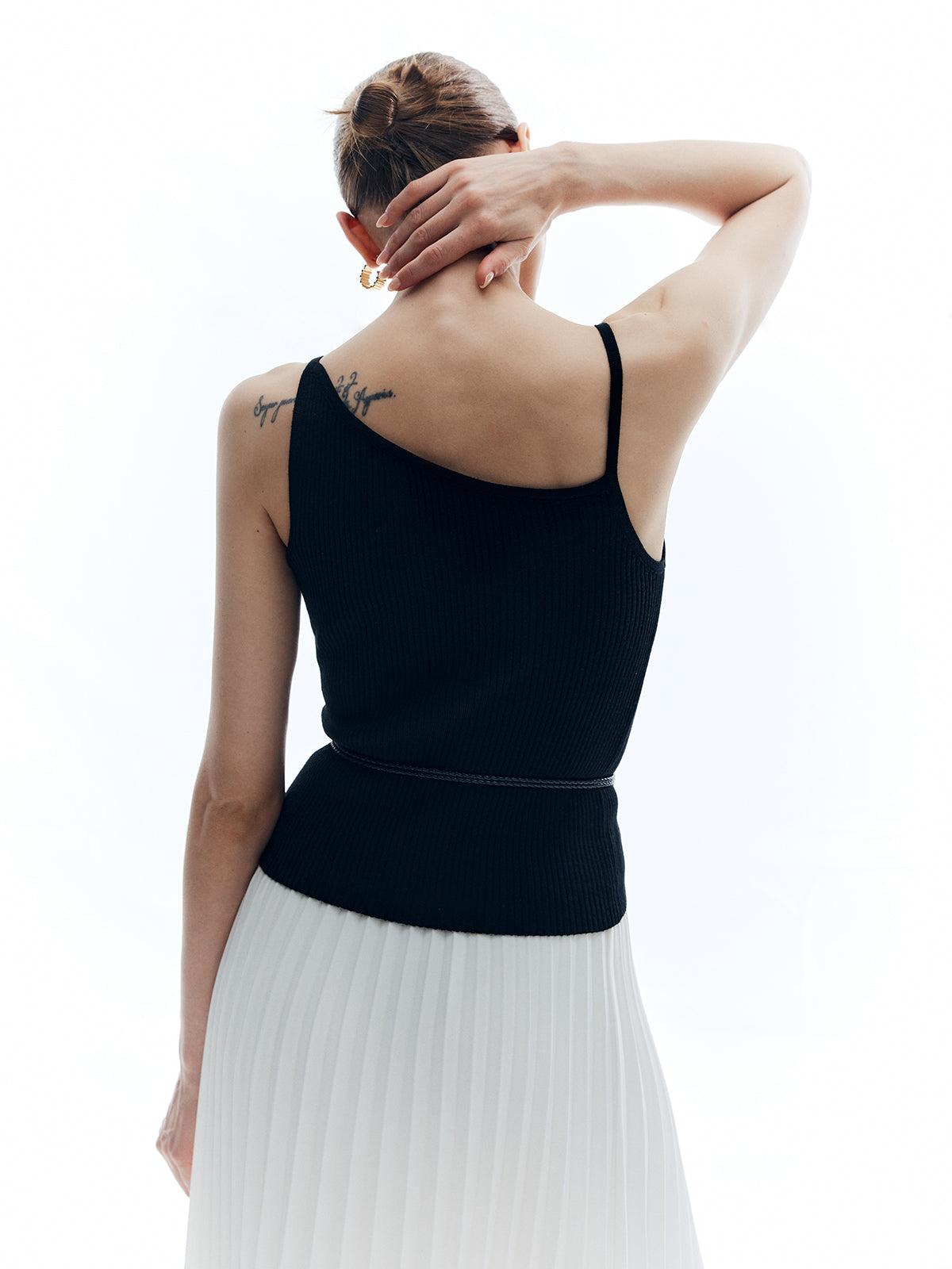Débardeur côtelé solide asymétrique