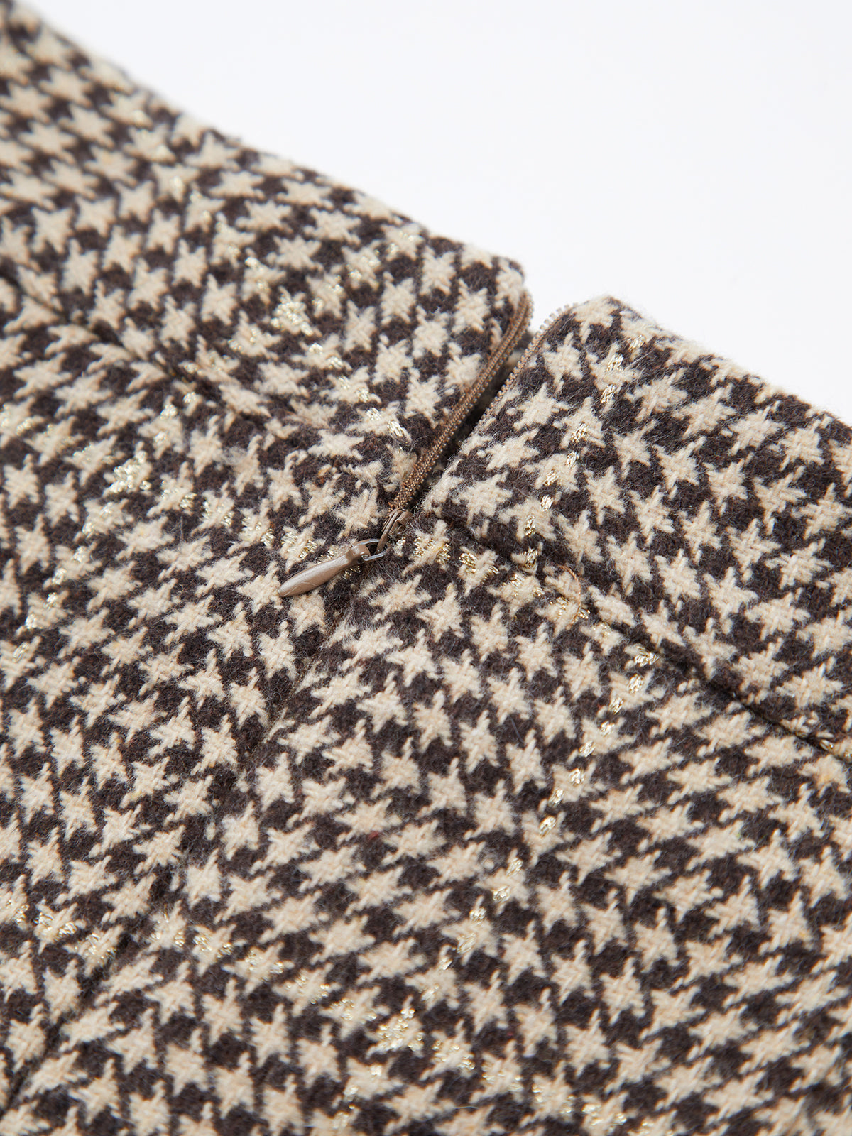Jupe midi fendue à boutonnière latérale en pied-de-poule