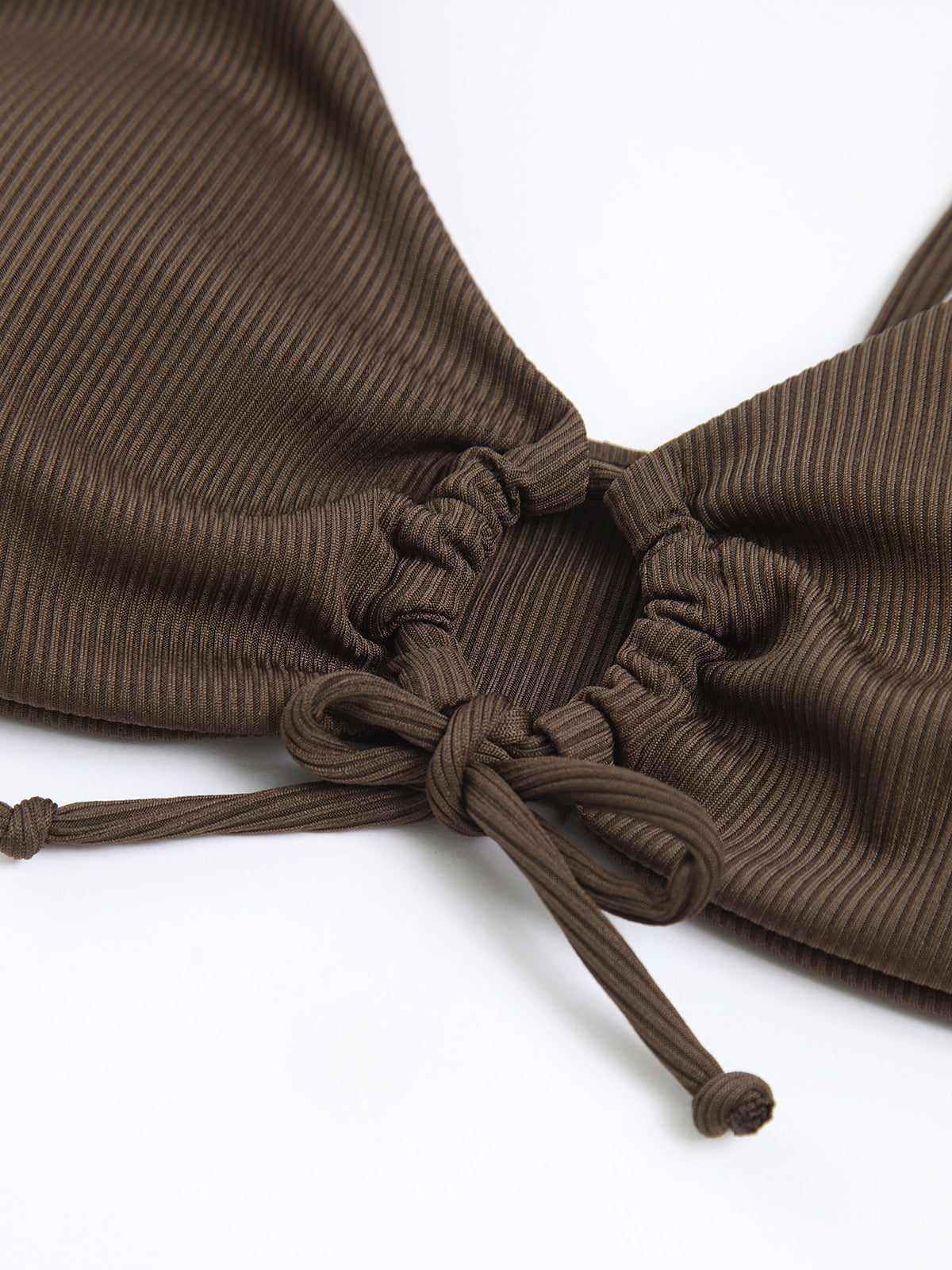 semble bikini triangle à découpe solide avec nœud à l'avant