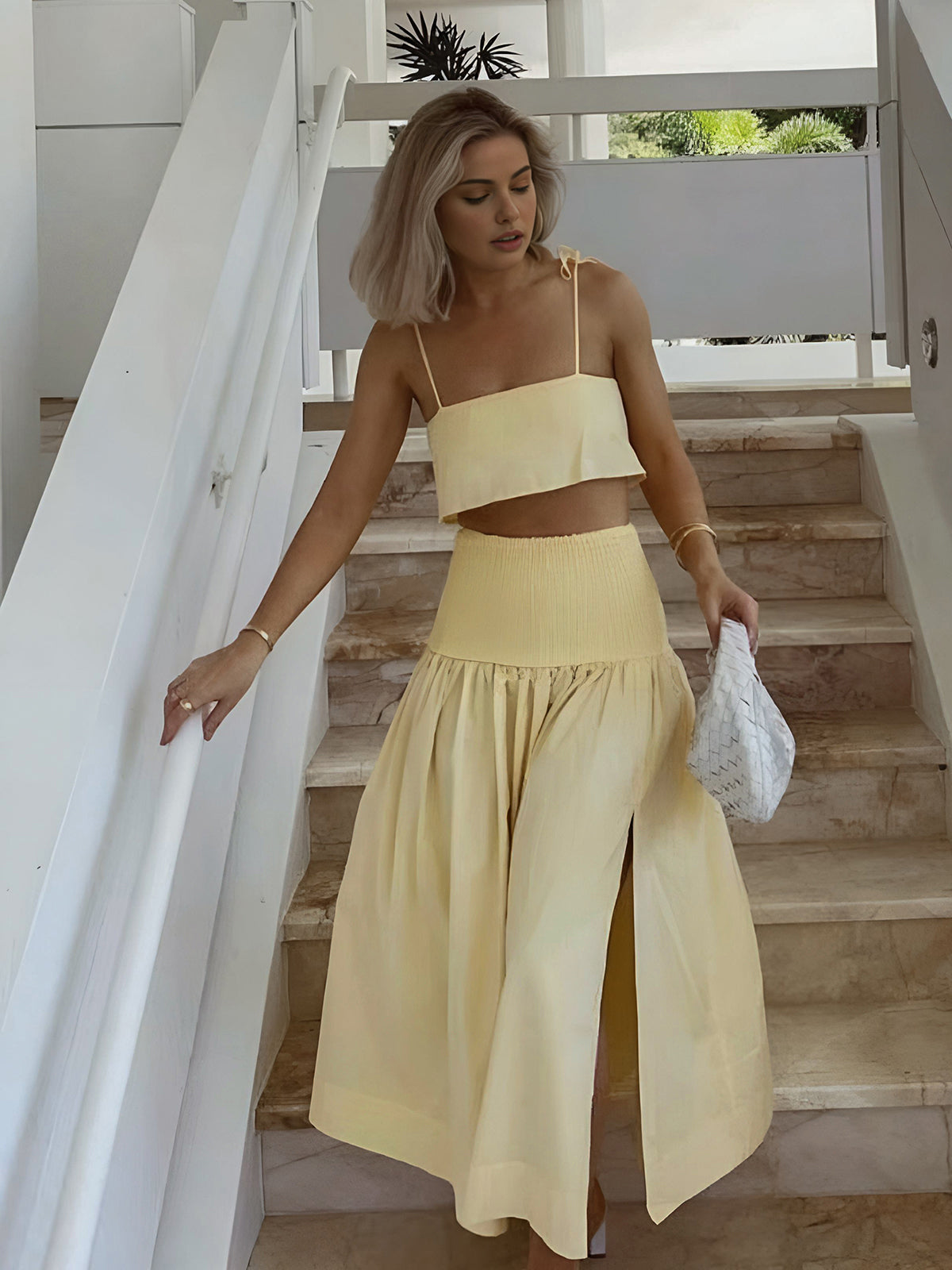semble jupe fendue à taille froncée