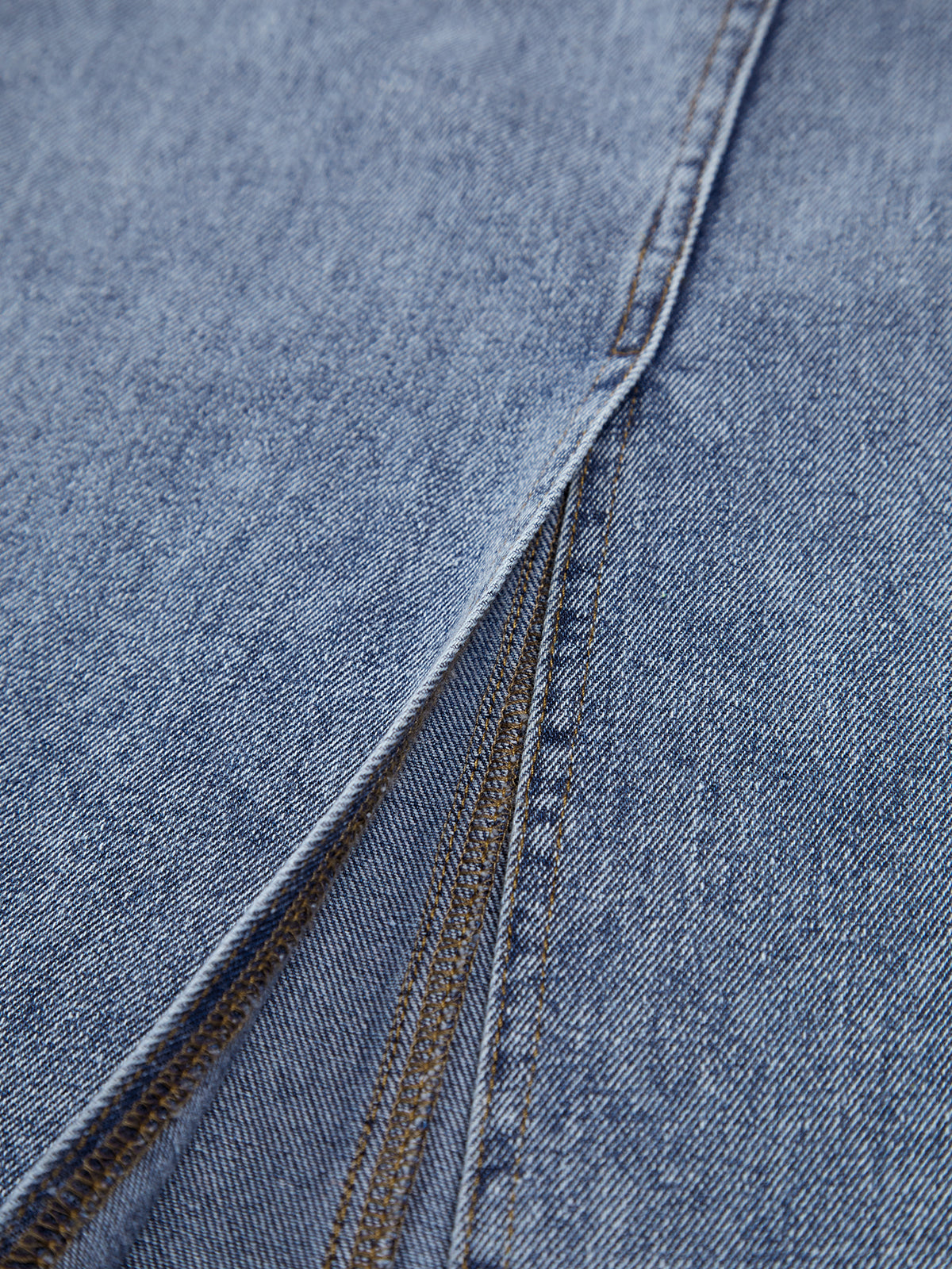 Asymmetrical Button Pockets Slit Denim Maxi Skirt