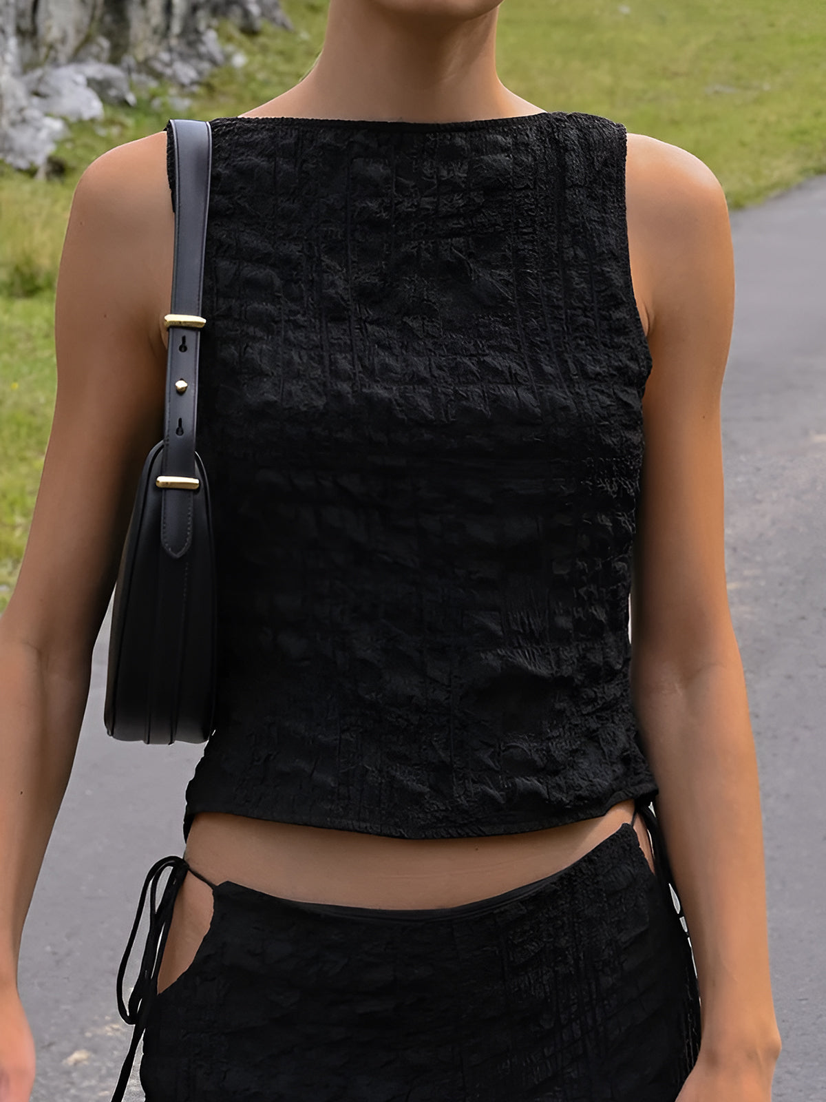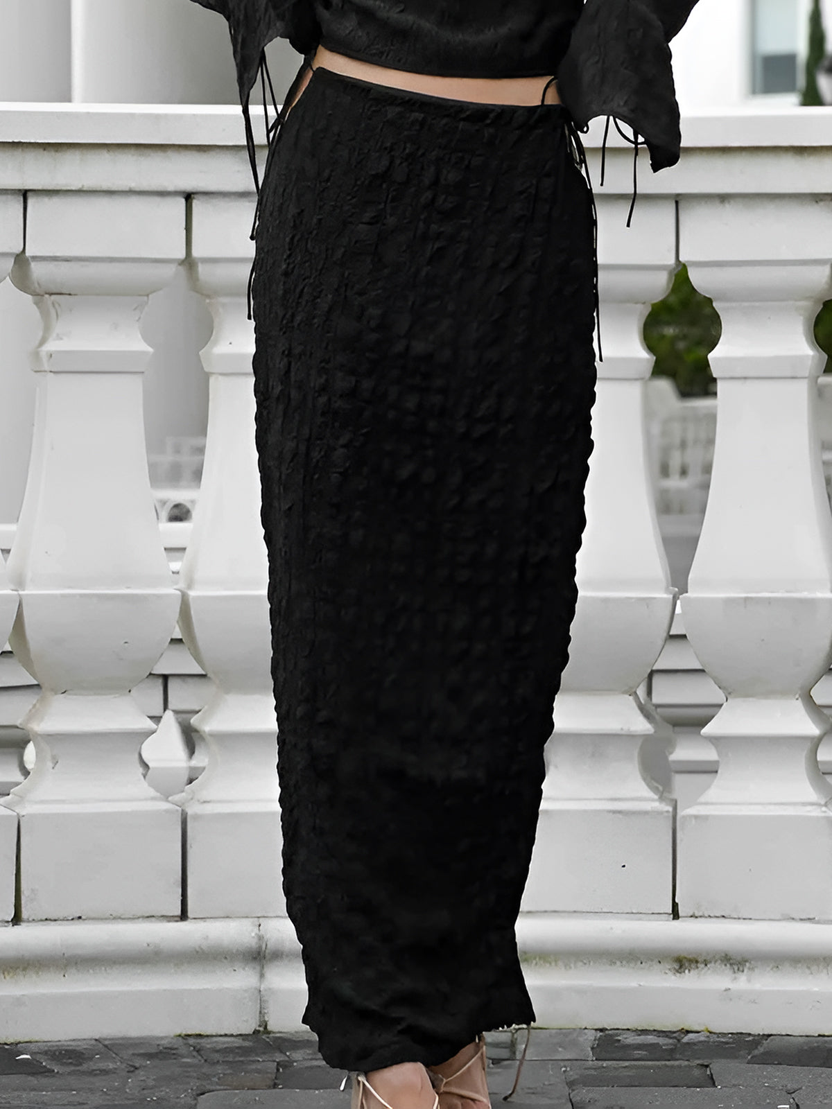 Chic Knotted Cutout Drawstring Skirt Set