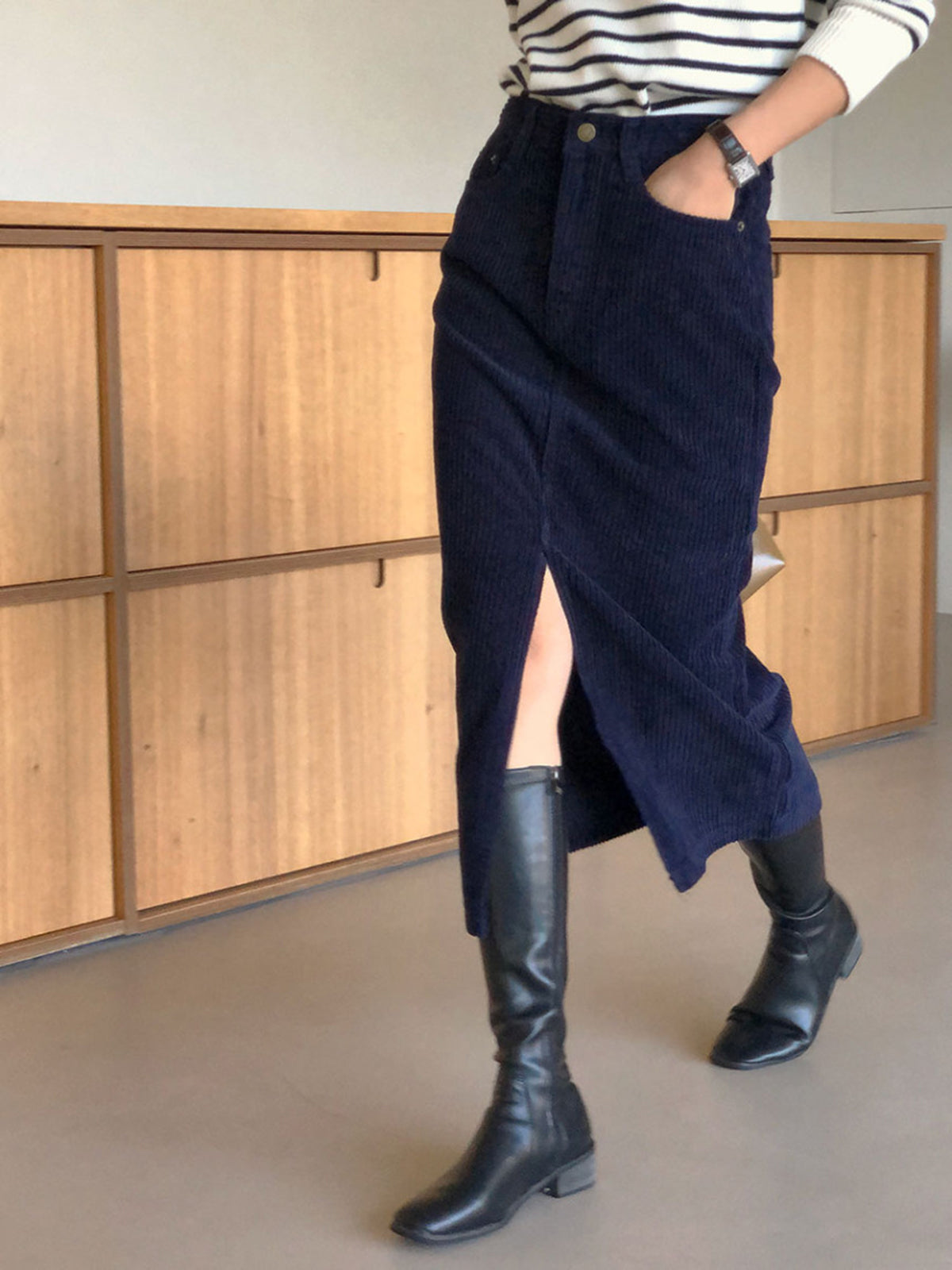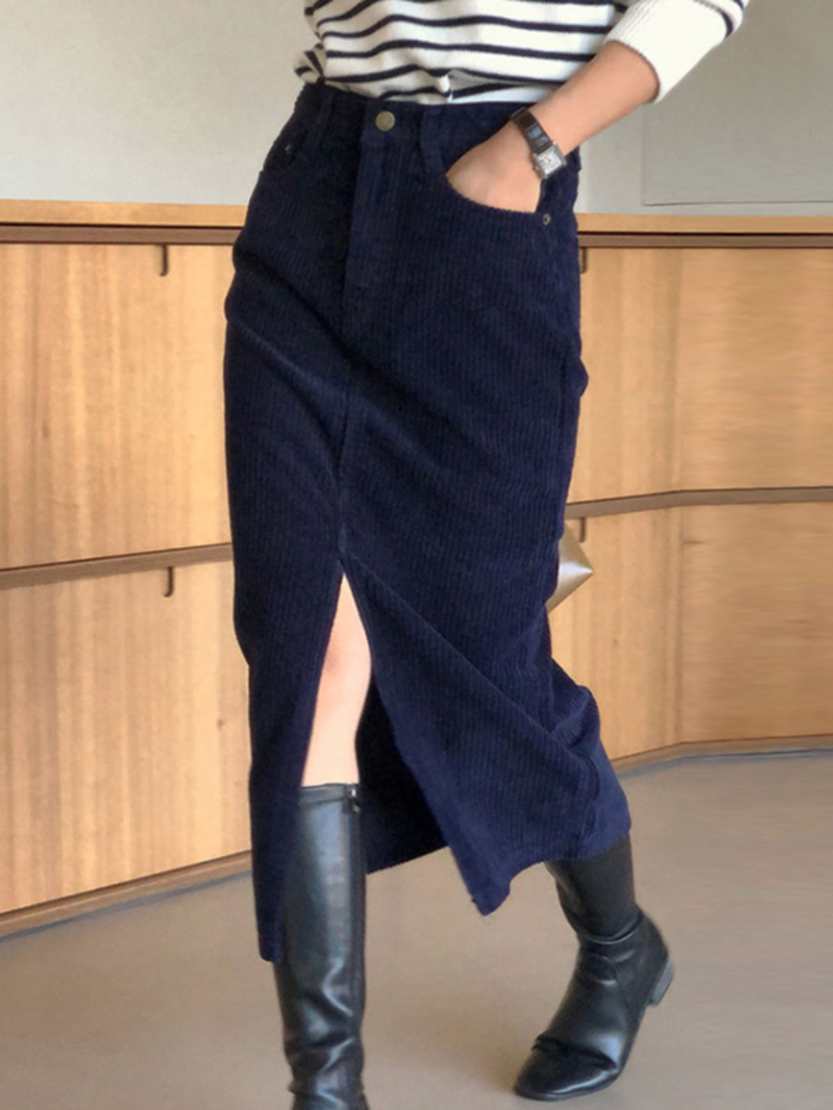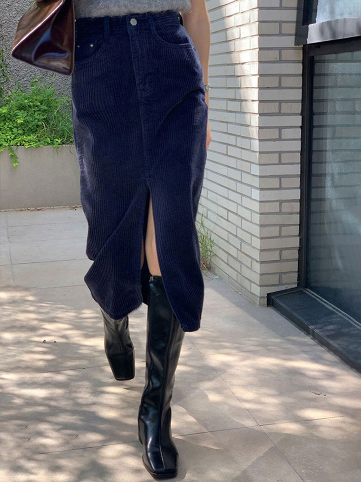 Corduroy Split Midi Skirt