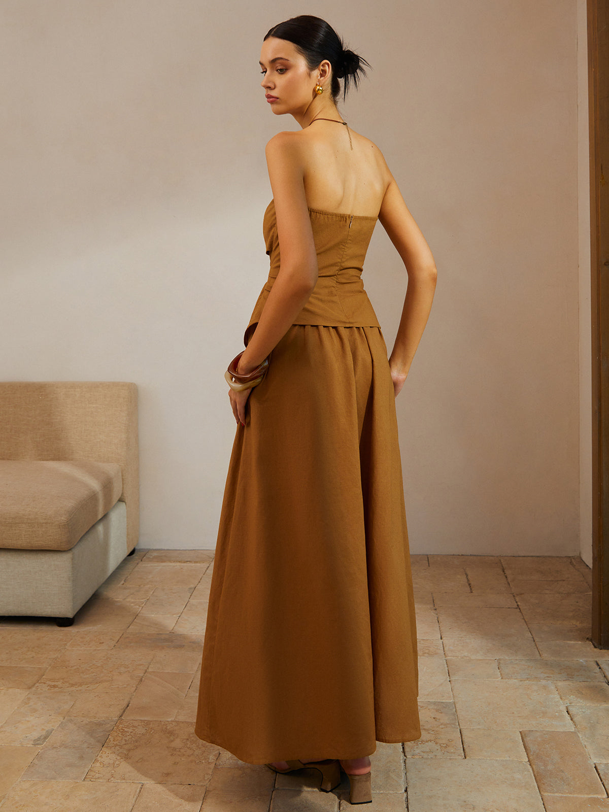 Cotton & Linen Pleated Pockets Skirt Set