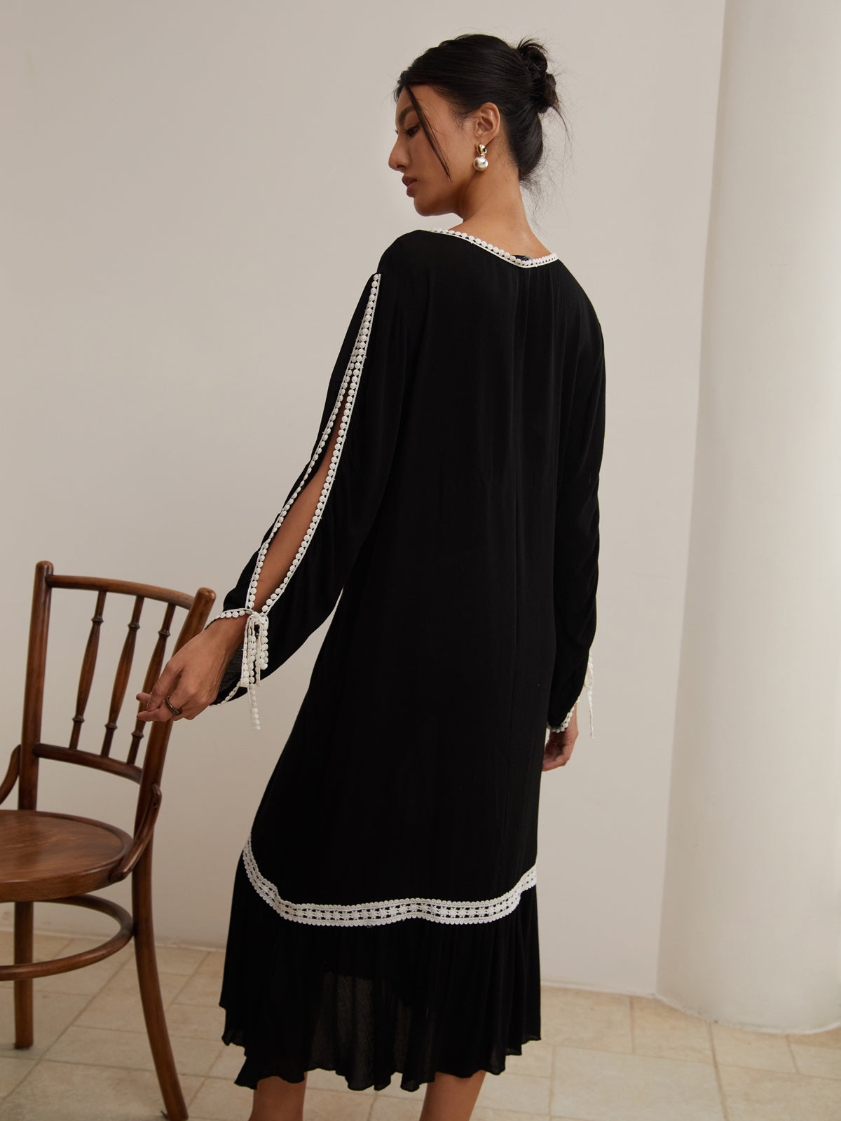 Frenchy Styling Lace Trim Midi Dress