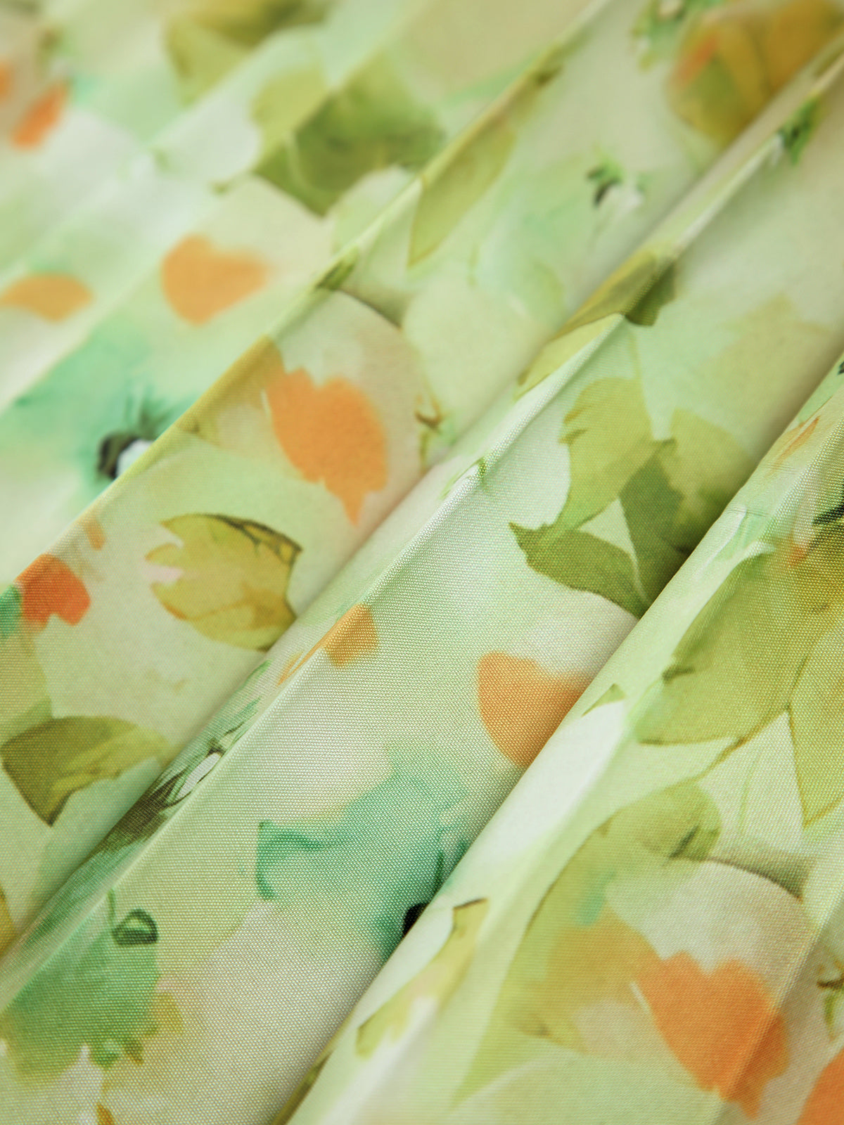 - Design: Print, Asymmetrical, Pleated, Cutout