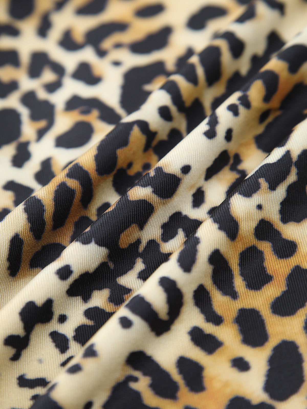 Leopard Print Lace Bra Backless Crisscross Long Dress