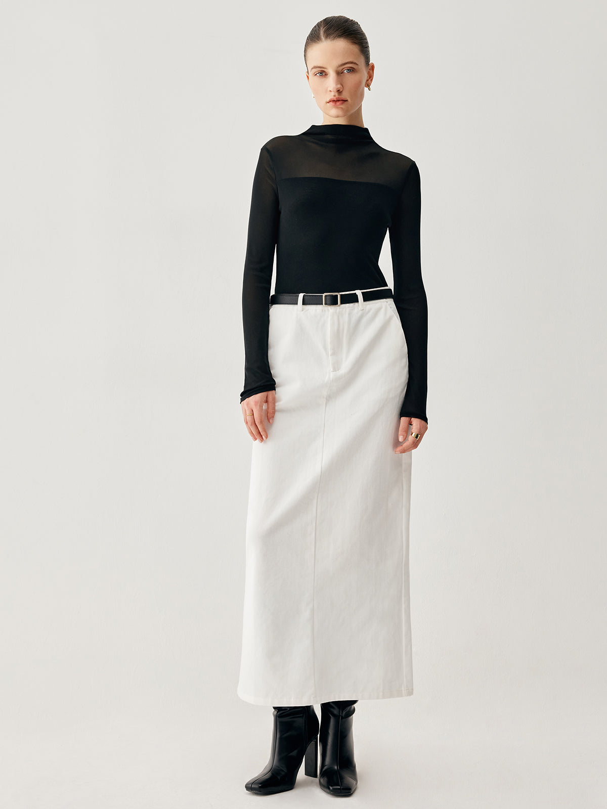 Slinky Patchwork Mesh Knit Long Sleeve Crew Neck Shirt