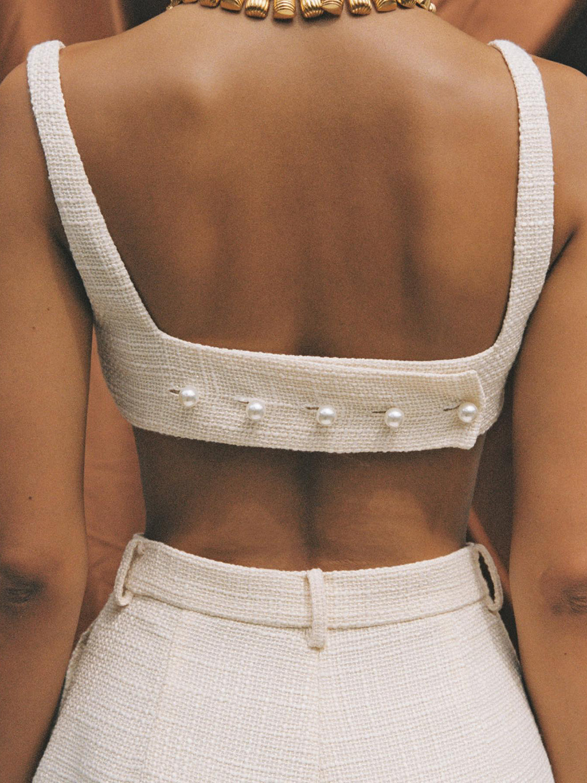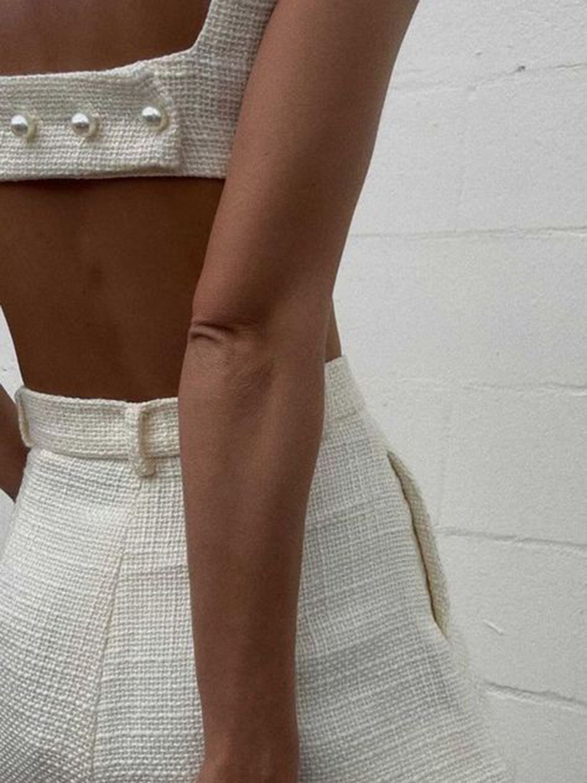 Tweed Backless Plain Shorts Set
