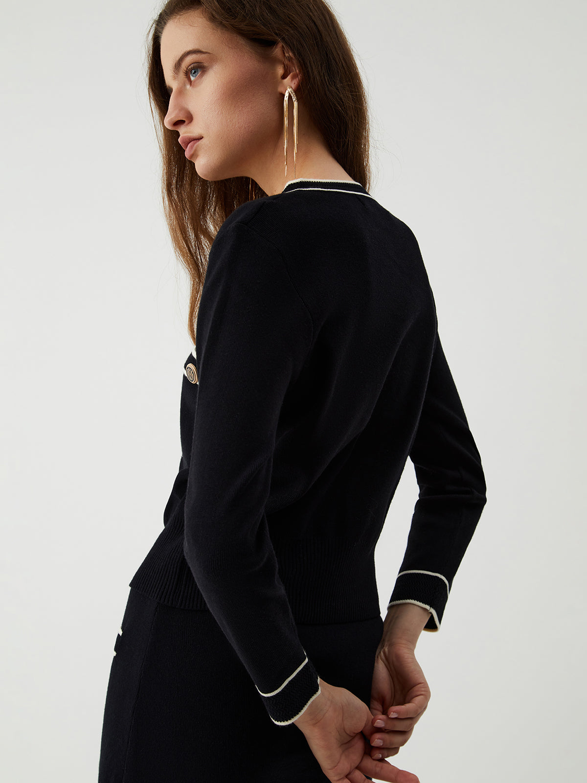 Vintage Contrast Hem Long Sleeve Two Piece Skirt Set